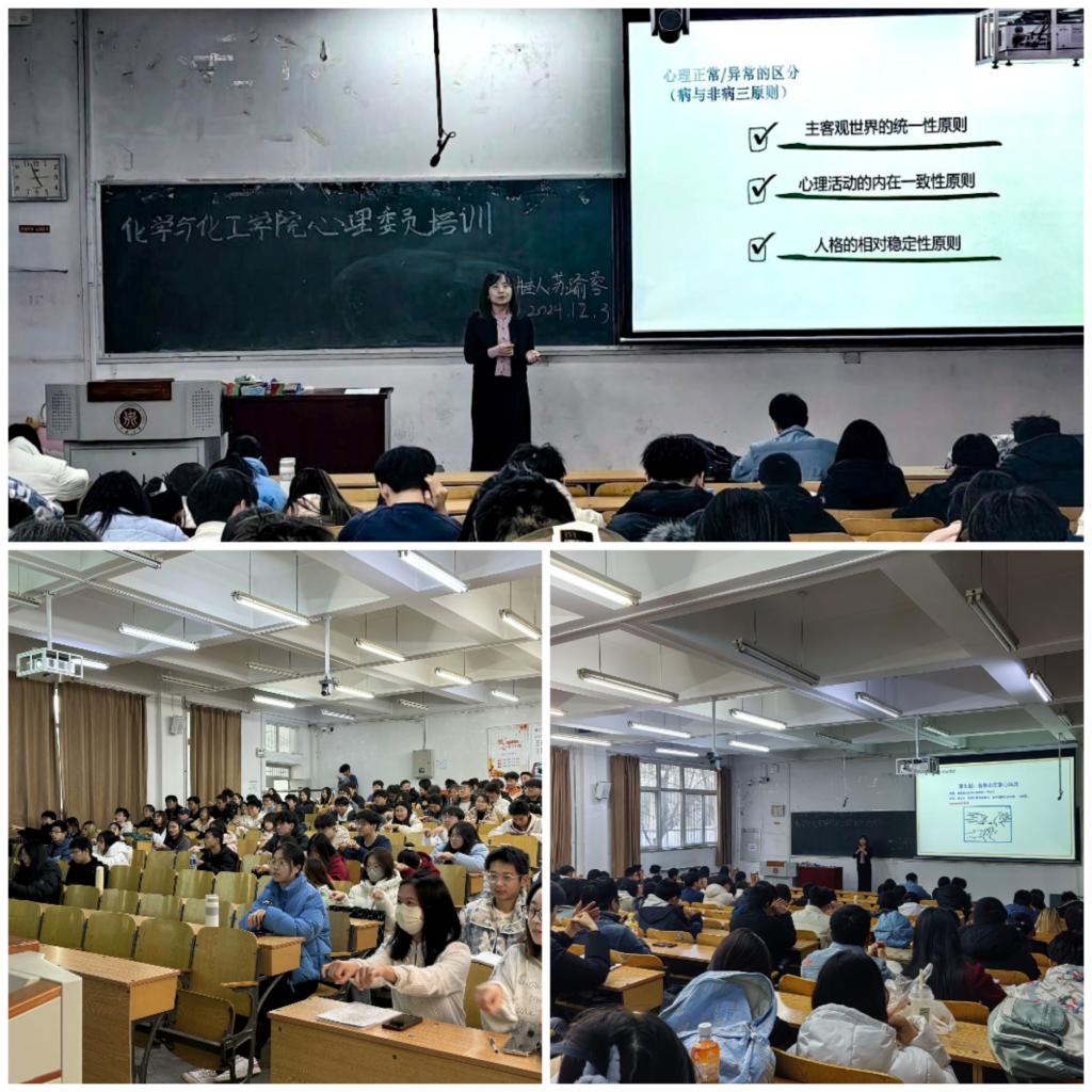 心理委员的工作能力,院心理辅导站心语轩特邀请大学生心理发展指导中心苏瑜蓉老师于12月3日下午4点在10101H面向23级、24级班级心理委员和宿舍安全信息员组织开展了心理知识培训会。