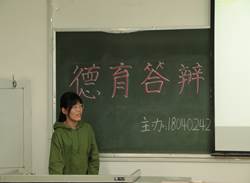 在班级德育答辩阶段,各班同学轮流上台答辩,从自我情况概述、未来发展、终极目标等多个方面进行了介绍,对自己的大学生涯进行了全面而详尽的规划。答辩期间,同学们不仅展现出了自己的风采,锻炼了自己的能力,还为自己以后的发展提供了方向。部分同学的答辩充分体现自己的理解,以青春的朝气与燃烧的激情博得了同学们的掌声,给大家留下了深刻的印象。同学们用心思考自己未来的生活,为如何度过大学四年生活提出了自己的规划,这是每位同学对自己成长的积淀,更是对未来的约定。