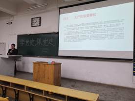 “没有共产党,就没有新中国”,自1921年建党以来,共产党一直为中国的发展不断地进行探索。廖书记还以党的历次代表大会为主线介绍了每次的代表大会的意义,使学生进一步了解了共产党的发展以及他是如何探索前进的。本着 “为人民谋幸福,为民族谋复兴”的初心,共产党不断的从历史中提取力量,探索前进。习近平主席曾说过“历史是最好的教科书”,而中国革命的历史就是最好的营养剂。