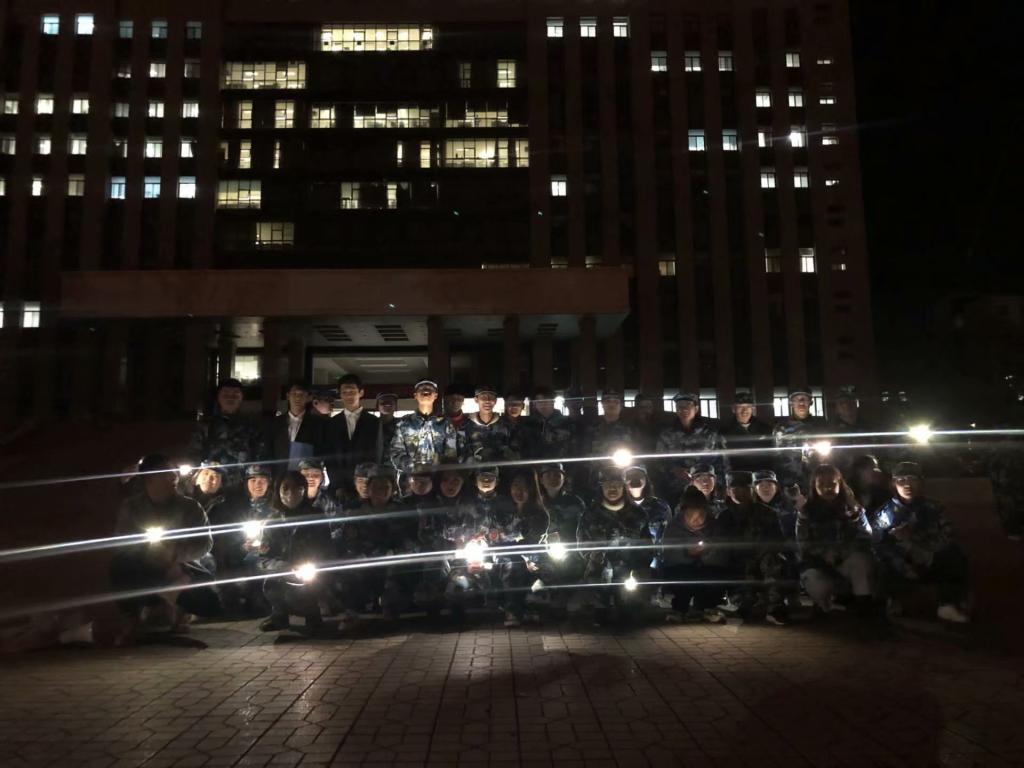 主教学楼前行知广场上举办了这次主题为“喜迎建校八十载,助力母校双一流”的团日活动,同学们集体用灯光摆出“致知于行”“我爱中北”“1941”“八十”等字形祝贺学校的八十岁生日。