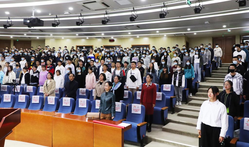 在庄严的国歌声中,新生开学典礼正式开始。副校长刘俊代表学校致辞,并向新生提出三点要求:一是个人理想追求与国家和民族的事业相结合,与民族复兴同频道、共进步;二是牢记社会主义核心价值观,养成优良的道德行为习惯;三是记得来时路,不忘梦归处,心怀担当,厚植家国情怀,激发奋进潜力。