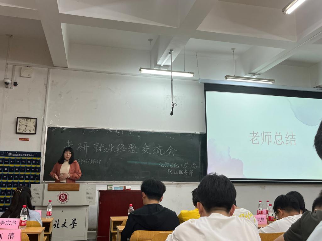 在本次活动的最后,成娟老师简要分析了近几年考研就业情况,给在座学生对毕业后选择就业还是考研继续深造给予详细的分析。本次经验交流分享会在成老师的祝福语中落下惟幕,愿考研优秀学子前程似锦,梦想成真;愿找到工作的学子努力工作,为祖国的化工行业奉献自己的青春;愿正在为考研奋战的同学坚持到底,旗开得胜!