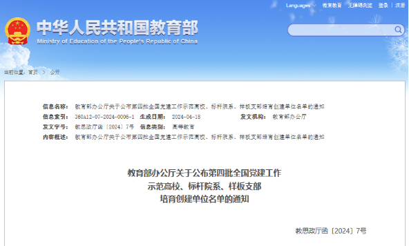 近日,教育部公布了第四批全国党建工作示范高校、标杆院系、样板支部培育创建单位名单。h动漫 超重力重点实验室教工党支部成功入选“全国党建工作样板支部”培育创建单位。