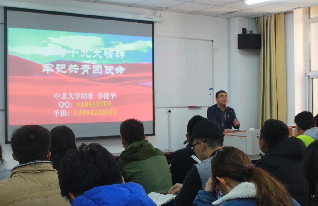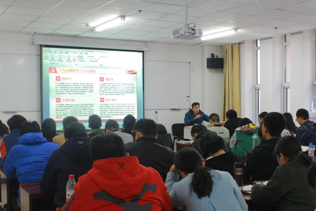 会议一开始,就由校团委书记李俊华从中国共产党人的初心和使命、十八大以来中国取得的历史性成就、中国特色社会主义进入新时代的三个重要特殊意义和四大定位及新时代中国特色社会主义思想八大明确、新时代中国特色社会主义发展的战略安排等几方面详细地向大家解读了十九大精神。学生干部领悟颇深,对十九大的会议精神有了更深层次的了解,坚定理想,牢记做为共青团人的初心和使命,立誓争做先锋模范,团结身边同学,服务身边同学,维护他们的权益。