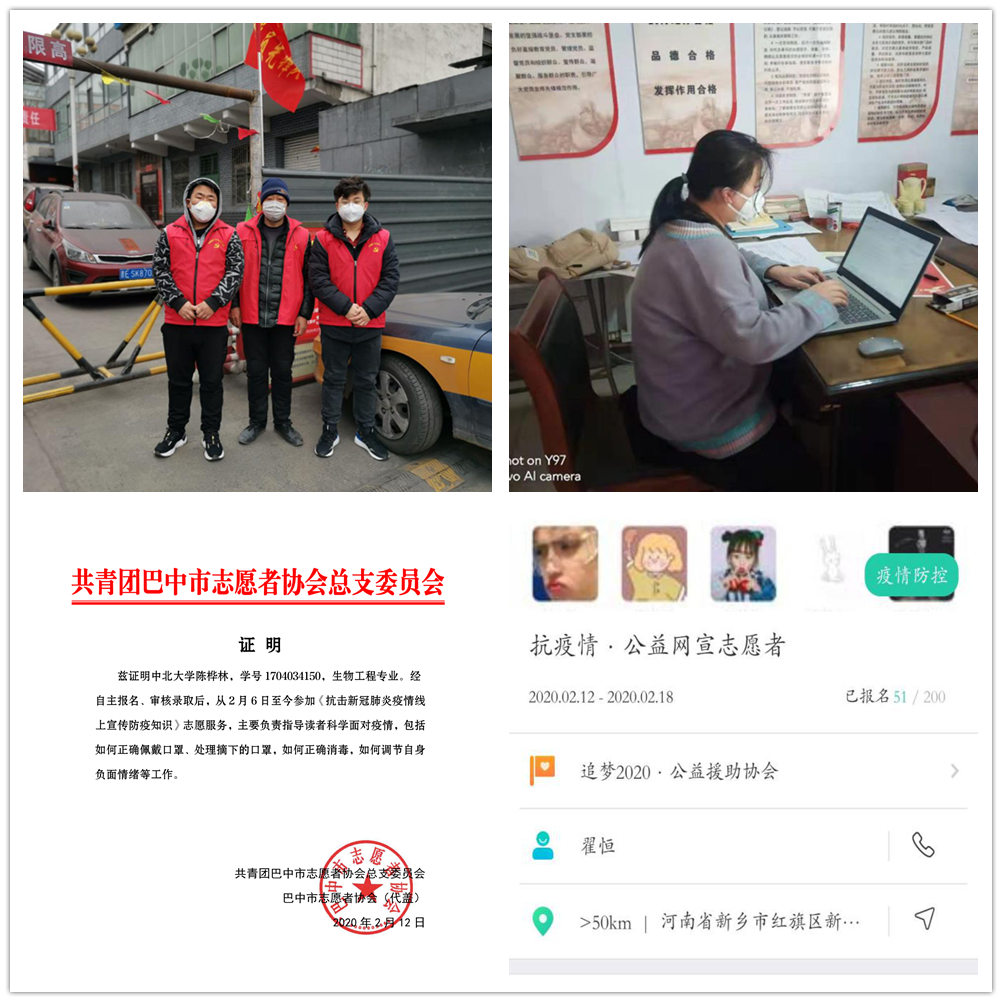 面对这场来势汹汹的疫情,多数人选择在家隔离。但总有一部分人选择为家乡出一份力,在保障自身健康与学习的前提下,主动参与当地防疫志愿工作。有参加志愿工作的同学表示:“作为新时代的大学生,虽然不能像医护人员一样奋战在一线,但仍然可以做一些力所能及的事情,为家乡的防疫工作尽自己的绵薄之力。”