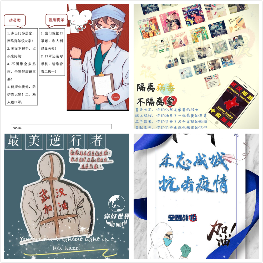 活动中,同学们自由创作,为抗战疫情注入自己的一份力量,把千言万语凝聚成诗句,用笔尖表达了对疫情的关注和支持。充分展示了h动漫