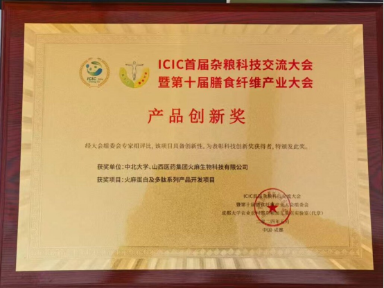教师李晓君与山西医药集团火麻生物科技有限公司合作的“火麻蛋白及多肽系列产品开发项目”荣获“产品创新奖”。