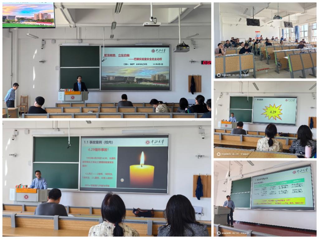 讲座中,马忠平老师结合多年实验室安全管理经验,从近年来高校实验室安全事故典型案例切入,深入剖析了实验室安全隐患的根源。他强调,“实验室安全绝非简单的制度遵守,而是需要每位师生立足自身角色,主动厘清安全责任链条,将“我要安全”的理念转化为日常行动。马老师用真实的案例让我们意识到,安全红线不能仅靠制度约束,更需要每个人的自觉担当。