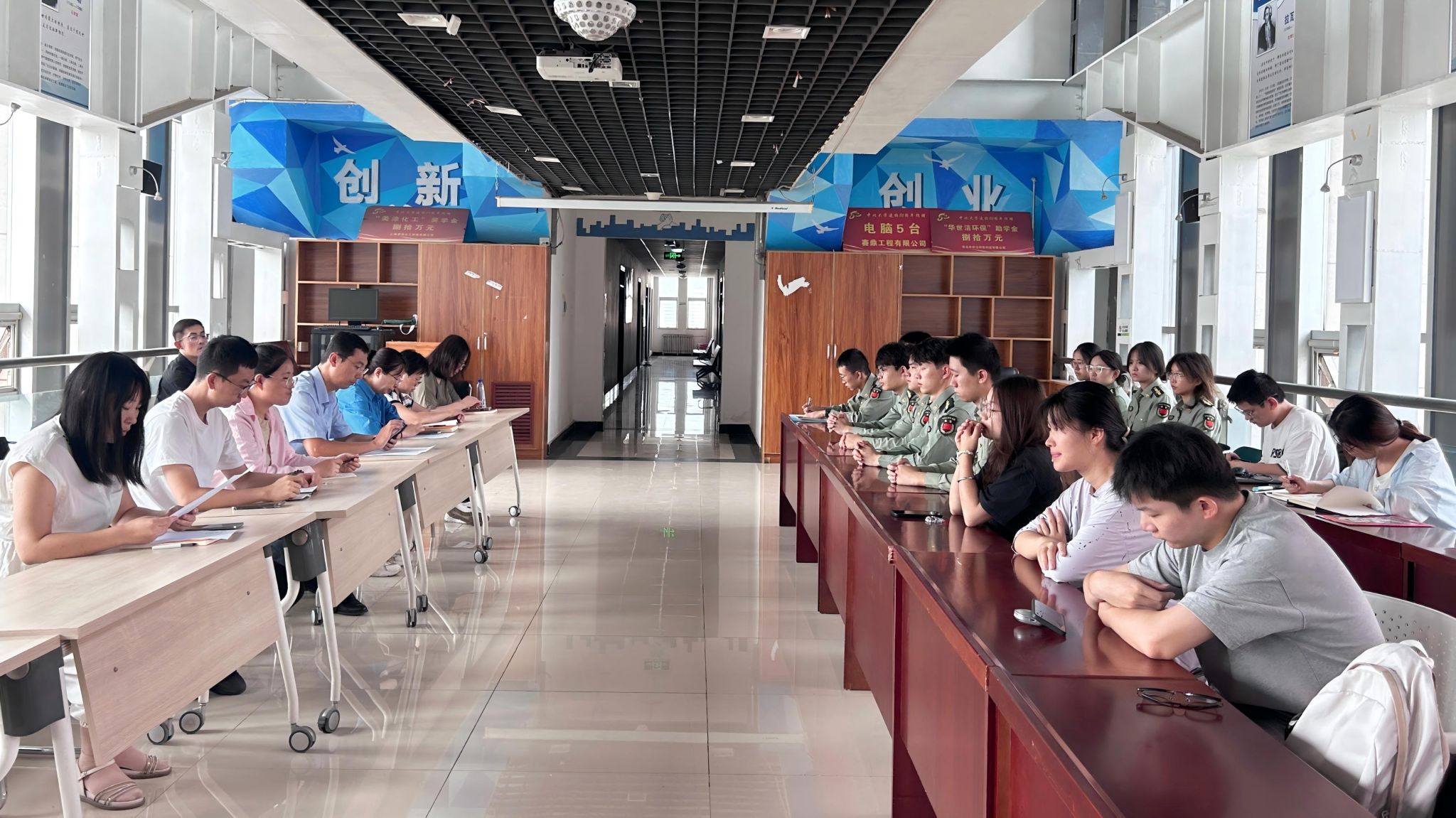 在科学楼C座7层连廊举行2025级新生军训教官见面会。学院党委副书记蔡文涛、四营全体教官、2025级新生班主任及朋辈辅导员共同参会,会议由学生科科长赵芸芳主持。