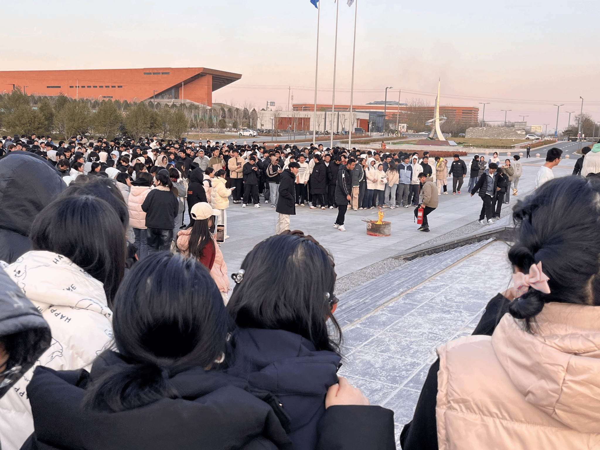 当天16时30分,急促的消防警报准时划破校园的宁静,演练正式进入应急疏散环节。学生反应迅速,立即用衣物、毛巾等捂住口鼻,按照预先掌握的“低姿、有序、靠右”原则,快速从宿舍房间撤离。在各楼层引导员和学院工作人员的现场指挥下,学生们沉着冷静,自觉摒弃推搡拥挤等危险行为,沿着指定疏散通道稳步前行,最终安全抵达学校东门广场的集结区域,并在工作人员的指引下按班级列队,面向南侧整齐站立,整个疏散过程高效有序,仅用8分钟便完成了全部人员的集结清点。