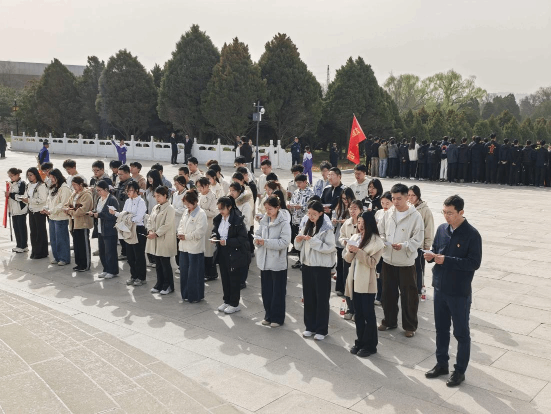 党委组织师生党员前往牛驼寨烈士陵园,举行“缅怀革命先烈,赓续红色血脉”清明祭扫主题党日活动,学院党委副书记蔡文涛及师生党员代表50余人参与了本次活动。