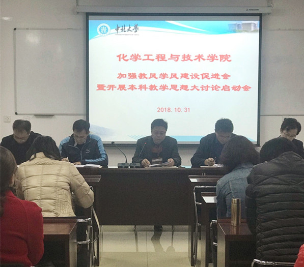 10月31日下午,化学工程与技术学院在科学楼206召开加强教风学风建设促进会暨开展本科教学思想大讨论启动会。会议由学院党委书记廖海洪主持,学院领导班子及全体教职工参加会议。