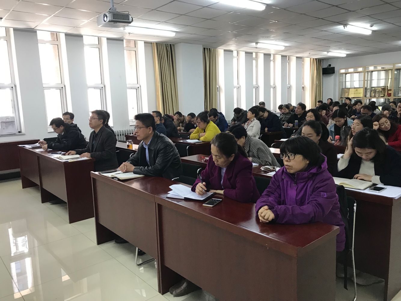 党员领导干部和师生员工参与“改革创新、奋发有为”大讨论的积极性主动性,学院前期进行了大讨论动员部署、召开党支部书记培训会、制定大讨论学习资料、举办“大讨论”学习报告会,提高学院师生对大讨论的认识。此外,学院领导班子于3月20日前往太原理工大学进行对标一流调研,领导班子结合本单位、本岗位和个人实际,对标一流、解放思想、勇于改革、善于创新,进行查摆问题、剖析原因。按照校党委组织部《关于做好中层干部大讨论工作的通知》要求,学院于2019年3月22日,在科学楼206召开中层干部大讨论工作会议,会议由院党委书记廖海洪主持,全院教职工和学生代表参会,。