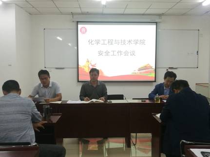 9月29日,化学工程与技术学院召开安全工作会议,全体院领导、学院安全员参加此次会议,本次会议由院党委书记廖海洪主持。
