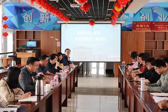 优秀校友海南维新国际供应链管理有限责任公司法人代表郑洪波、孙召通以及2005届应用化学专业优秀毕业生牛培旭三位校友。三位校友从专业学习、人生择业和工作轨迹三方面分享了自己的心得体会。他们希望同学们要勇于尝试,利用在校的大好时光多学习。努力突破自己并且敢于和自己较量,不断取得进步。