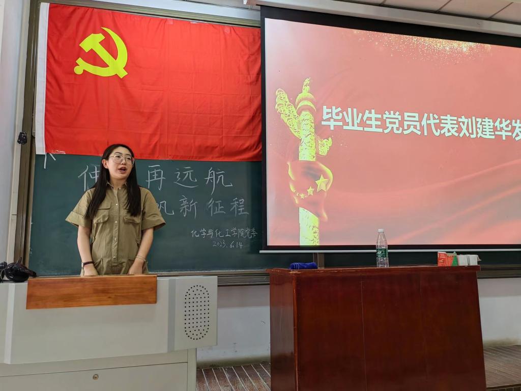 不仅得到了历练,同时学会了分析与思考,学会了忍耐与包容,学会了合作与竞争。她表示全体毕业生党员聚是一团火,散是满天星,未来的道路将不忘初心,不断探索,以优异成绩回馈母校,并表达了对学院老师们的美好祝愿。