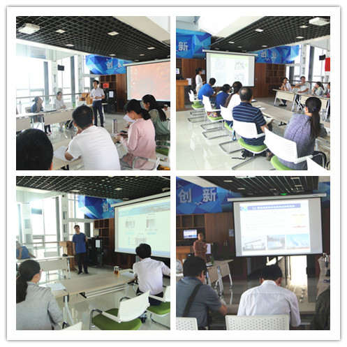 会上,新进教师郭婧主要就她博士期间的工作做简要介绍,主要阐述了采用流化床原子层沉积反应技术在TiO2纳米颗粒表面沉积SiO2,Al2O3薄膜的过程及其形貌和特性,并就原子层沉积这一技术在催化剂制备领域的应用前景进行了介绍;张栋铭老师主要对直接硼氢化物及过氧化氢燃料电池的结构,工作原理及应用领域进行了详细的介绍;康雪老师主要对高倍聚光光伏系统中聚光三结电池的直接接触相变散热研究以及该冷却方法其它大功率电子元器件方面的应用做了阐述。整场研讨会在愉快热烈的气氛中进行,在场教师与汇报人畅所欲言,充分交流,分享科研工作中的心得与体会。
