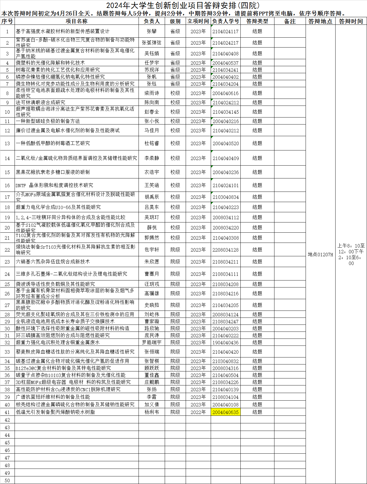 学院负责对2022年、2023年立项的省级、校级、院级项目开展结题答辩或中期检查。答辩时间定于4月26日上午,地点01207H。