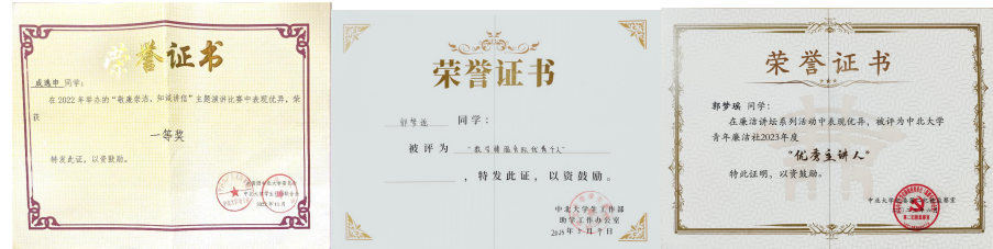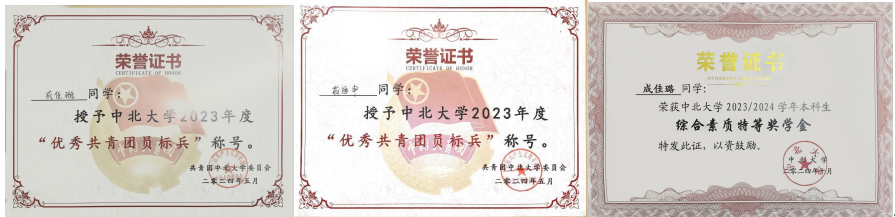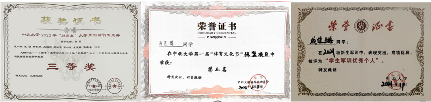 曾荣获国家奖学金1次,国家励志奖学金2次,综测一等奖2次,综测二等奖1次,望山奖学金1次,单项奖学金1次
